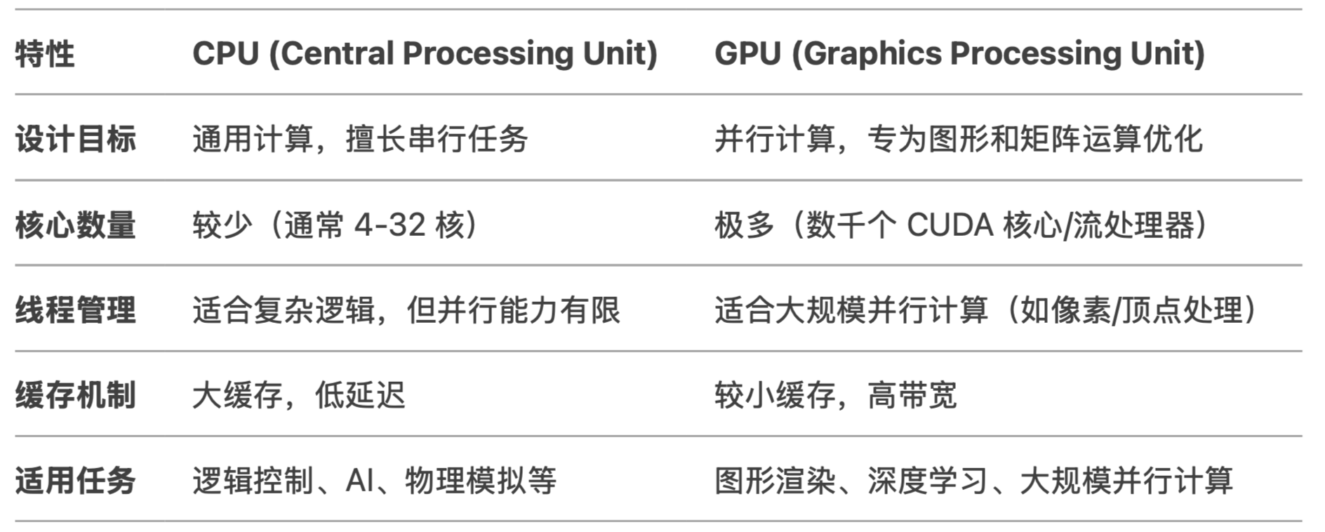 CPU和GPU的架构差异决定了运行在其上的程序差异。